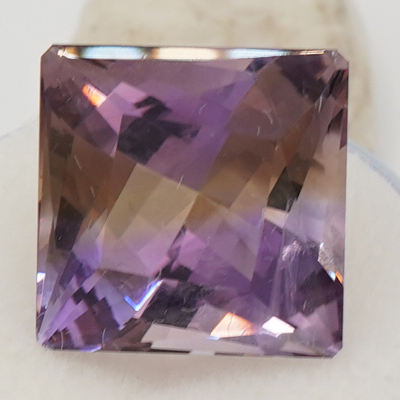 Nice stone with predominant, medium-colored amethyst with a few flashes of yellow citrine.  Small, internal fracture near one corner is visible by eye.